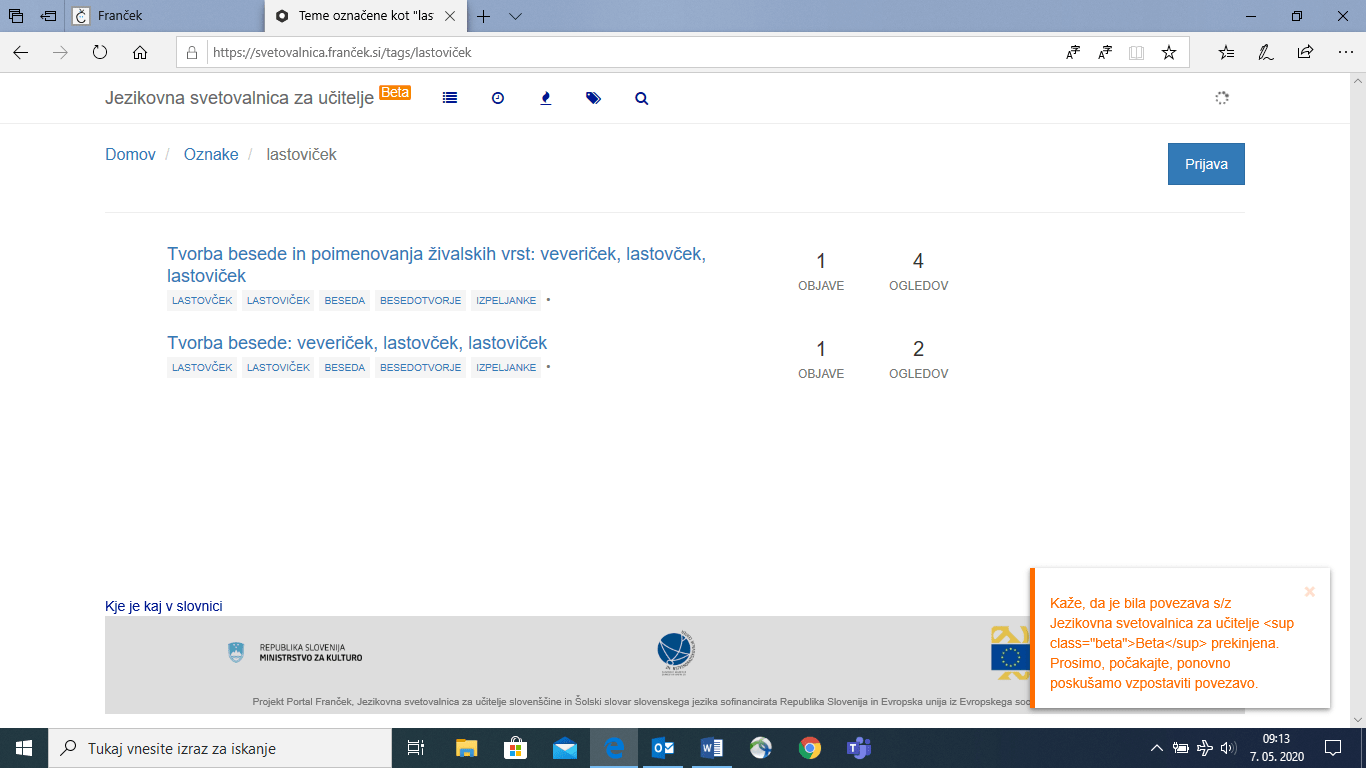 V času, ko pouk in drugo naše delo poteka na daljavo in v največji meri v pisni obliki, še bolj premišljeno kot sicer oblikujemo svoja besedila, s katerimi vzpostavljamo odnos, posredujemo vsebino, se medsebojno obveščamo, ostajamo v stiku z učenci in dijaki (in s starši), dajemo navodila za delo, oblikujemo povratne informacije … Pri tem se pogosto znajdemo pred vprašanjem, kako kaj zapisati, da bo besedilo za naslovnika jasno, razumljivo in da bo doseglo svoj namen. K temu poleg tega, da dobro obvladamo vsebino, veliko pripomore tudi jezikovna pravilnost besedila. Besedni red v povedi, slovnične oblike besed (npr. pri sklanjanju, stopnjevanju …), zapis z malo ali veliko začetnico pri pravopisu … so jezikovna sredstva, s katerimi so izraženi podatki, zato vsaka površnost ali napaka razumevanje okrni ali celo spremeni pomen. Veliko odgovorov o pomenu besed in njihovi ustreznosti v določenih okoliščinah (npr. v razlagi ali opisu postopka pri določenem predmetu, uradnem besedilu za obveščanje …) lahko hitro najdemo v jezikovnih priročnikih v elektronski obliki na portalu Fran in v obeh slovnicah za šolsko rabo na portalu Franček. Tretji prispevek v nizu, ki spodbuja k rabi jezikovnih portalov, pa nas vabi, da pomoč ob različnih jezikovnih dilemah poiščemo na portalu Franček v Jezikovni svetovalnici za učitelje na povezavi https://svetovalnica.franček.si/domov .Odgovore na vprašanja lahko iščemo po učnih vsebinah in po oznakah, če pa po straneh brskamo pogosto, si lahko ogledamo tudi le nedavne objave.