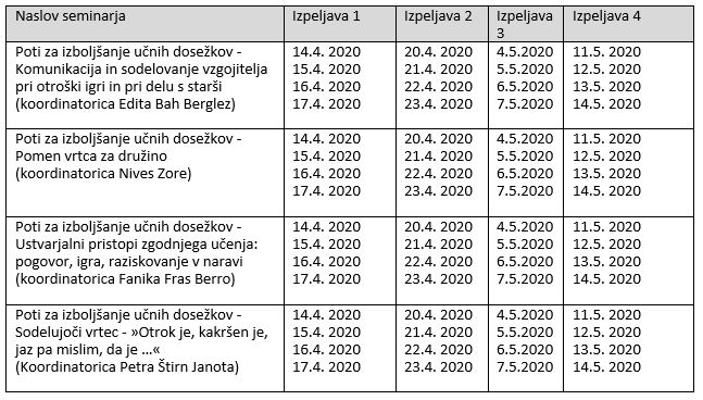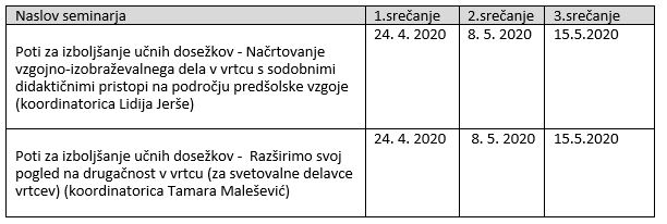 RAZPORED SEMINARJEV ZA STROKOVNE DELAVCE VRTCEV