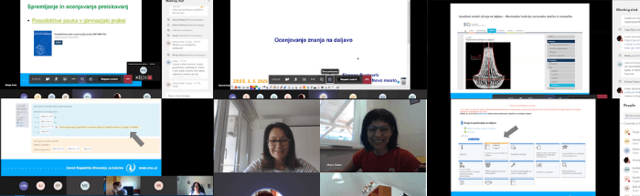 Predstavljen je bil primer ocenjevanja na daljavo iz prakse. Videokonferenčno srečanje smo sklenili z odgovori na vprašanja, ki so jih učitelji pred videokonferenco zapisali v vprašalniku.