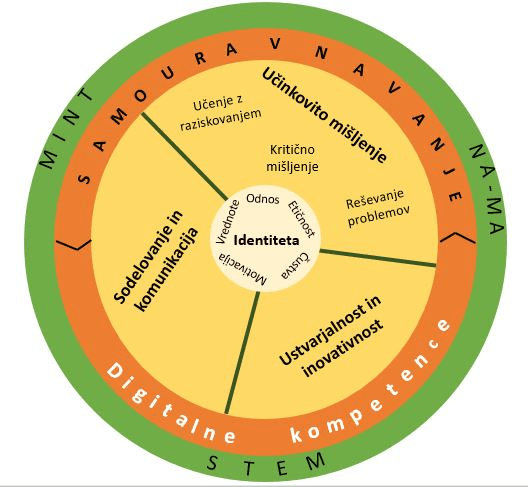 Za potrebe projekta smo v Sloveniji oblikovali tudi model prečnih veščin (slika 2 spodaj), ki na področju STEM-kompetenc/veščin sovpada s konceptom projekta.