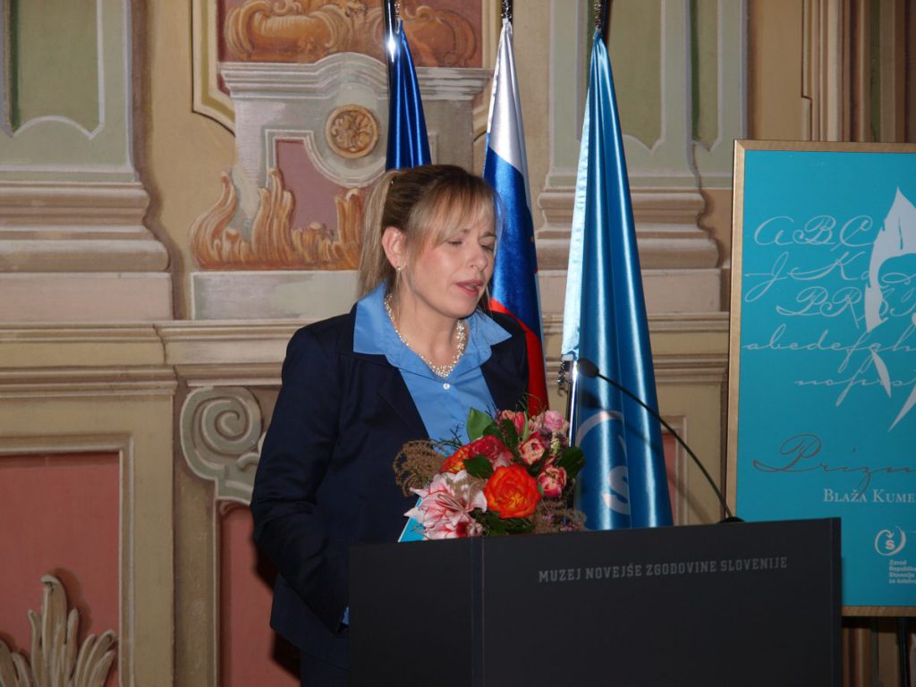 Nagrajenka Tatjana Kerin se je ob koncu slovesne podelitve priznanj zahvalila v imenu vseh prejemnikov priznanj in nagovorila zbrane.